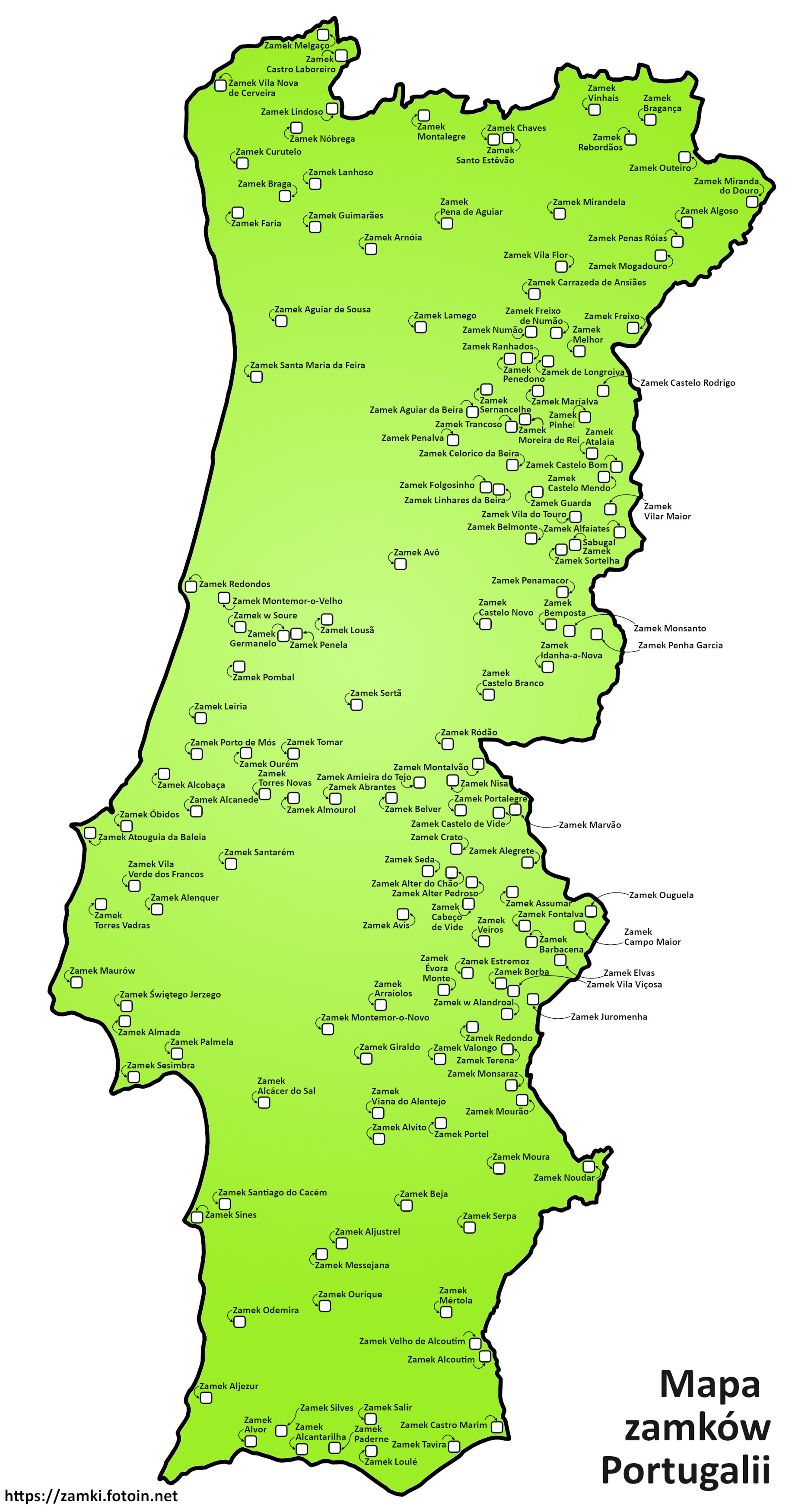 Zamki w Portugalii stanowią istotną część dziedzictwa historycznego i architektonicznego tego kraju. Wiele z nich pochodzi z czasów średniowiecza, kiedy to Portugalczycy bronili swojej niepodległości przed Maurami i innymi najeźdźcami. Mapa portugalskich zamków przedstawia rozmieszczenie 155 zachowanych warowni, które mają ogromne znaczenie kulturowe. Oprócz swojej wartości historycznej, zamki te są również ważnymi atrakcjami turystycznymi, przyciągającymi odwiedzających z całego świata. Mapa stanowi nieocenioną pomoc w planowaniu podróży po Portugalii, a także umożliwia zaznaczanie już odwiedzonych obiektów.